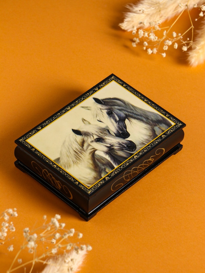 Шкатулка для драгоценных моментов жизни. Лаковая шкатулка «Белые лошади» — это произведение искусства, созданное для хранения ваших украшений. Элегантная миниатюра с изображением грациозных животных превращает обычный аксессуар в объект восхищения.