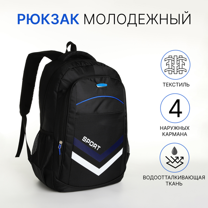 Рюкзак школьный на молнии, с карманами, чёрный/синий - товар, который Вы можете приобрести в нашем интернет-магазине. Заказ могут оформить как юридические, так и физические лица. Бесплатная доставка по Астане, также, отправляем по РК.