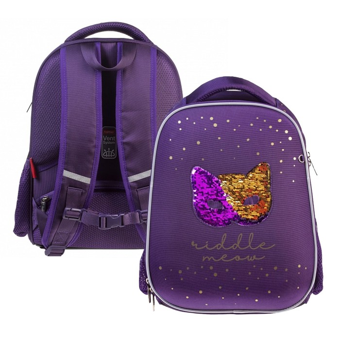 Ранец содержит 2 независимых отделения на молнии – основное - с плавающей перегородкой, и дополнительное с карманом -сеткой и функциональным органайзером , включающим в себя два кармана на молнии для мелочей и мобильного телефона. Для удобства на задней спинке предусмотрен потайной карман на молнии для ценных вещей. На боковинах – удобные вместительные карманы для бутылки с водой, термоса и других предметов. Дно ранца выполнено из ПВХ и дополнительно оснащено пластиковыми ножками для защиты от загрязнений и влаги. Светоотражающие элементы на лямках, передней и боковой частях ранца обеспечивают безопасность ребенка на дороге.