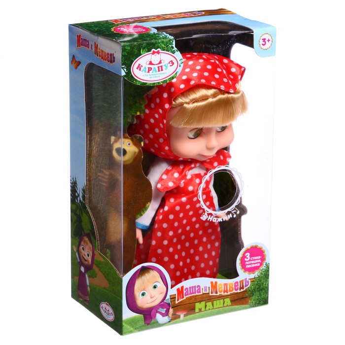 Кукла озвученная «Маша и Медведь», 25 см, в платье в горох