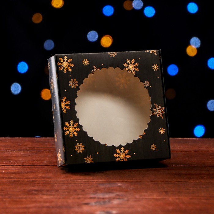 Подарочная коробка сборная с окном "Снегопад", 11,5 х 11,5 х 3 см
