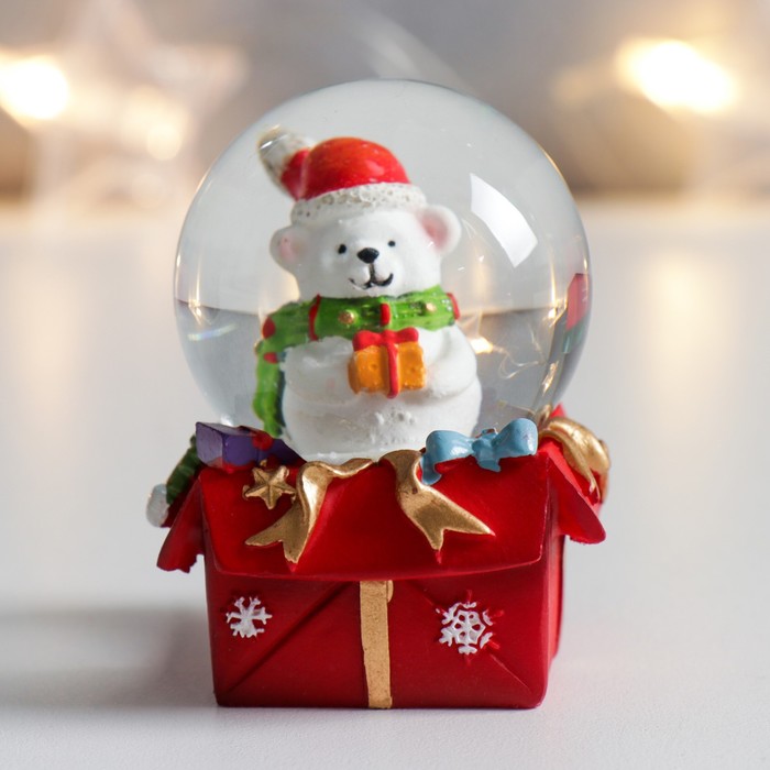 Сувенир полистоун водяной шар "Медвежонок с подарочком" 4,5х4,5х6,5 см