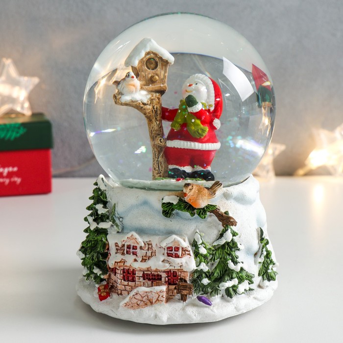 Сувенир полистоун водяной шар музыка "Снеговик со скворечником" 11,5х11,5х14 см