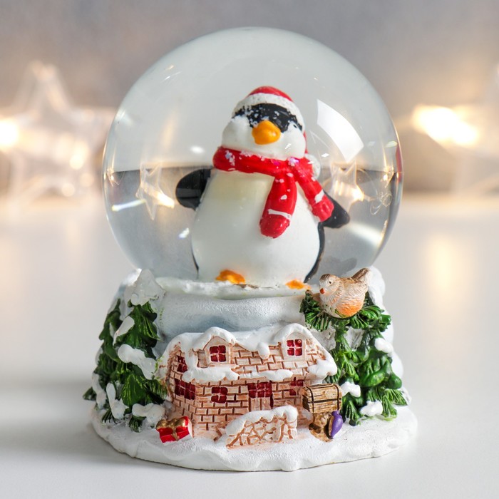 Сувенир полистоун водяной шар "Пухлый пингвинёнок в шарфике" 7х6,7х8,8 см