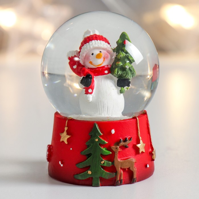 Сувенир полистоун водяной шар "Снеговик с ёлочкой" 4,5х4,5х6,5 см
