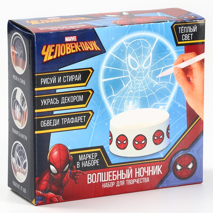 Человек-паук «Волшебный ночник» — это уникальный набор для детей от 5 лет, который помогает развивать креативные навыки и фантазию. С помощью этого ночника ребёнок сможет создавать свои световые композиции, используя любимых героев из популярного мультфильма.