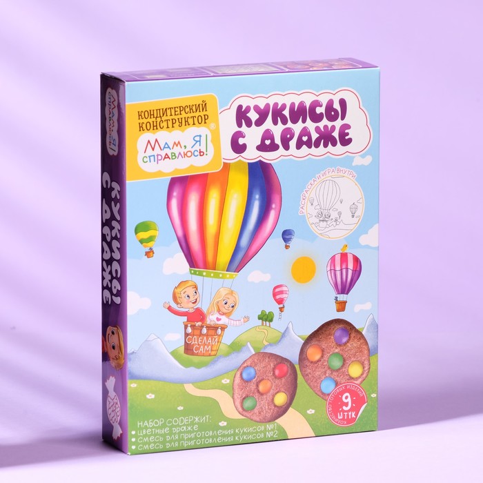 Кондитерский конструктор Мам, я справлюсь! кукисы с драже. Набор для приготовления в домашних условиях кондитерских изделий. Кондитерский конструктор-отличная идея, как занять детей увлекательным процессом приготовления настоящих шоколадных леденцов. Состав набора изготовлен из натуральных ингредиентов. Процесс приготовления позволит ребенку быть в роли производителя вкусного лакомства. Кондитерский конструктор - возможность преподнести подарок, сделанный своими руками. На внутренней стороне упаковки нанесена раскраска и игра, которые позволят увлечь вашего ребенка еще на некоторое время :)
