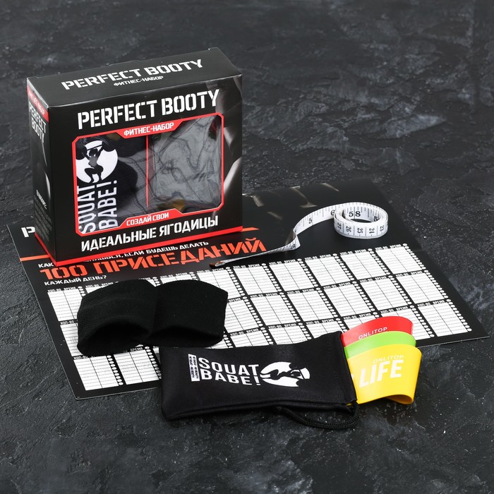 Набор Perfect booty, фитнес-резинки 3 шт., чехол, измерительная лента, напульсники, календарь тренировок, ONLITOP
