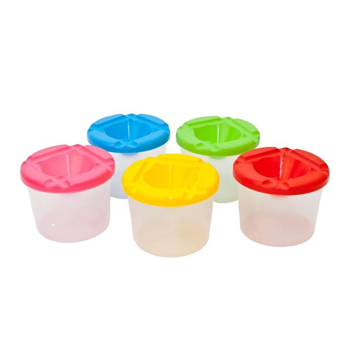 Стакан-непроливайка предназначен для промывания кисточек в процессе рисования. Плотно прилегающая крышка препятствует выливанию воды на рабочую поверхность. Специальная линия (метка безопасного уровня воды) указывает на оптимальный уровень наполнения стакана водой. На крышке имеются продольные желобки для кисточек.