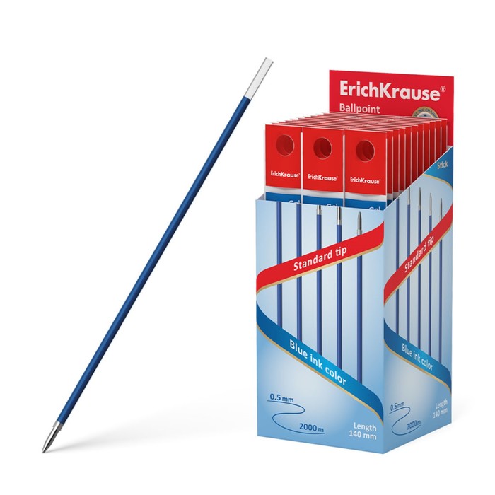 Стержень шариковый 1,0 мм, ErichKrause, для ручек R-301, 140 мм, чернила синие
