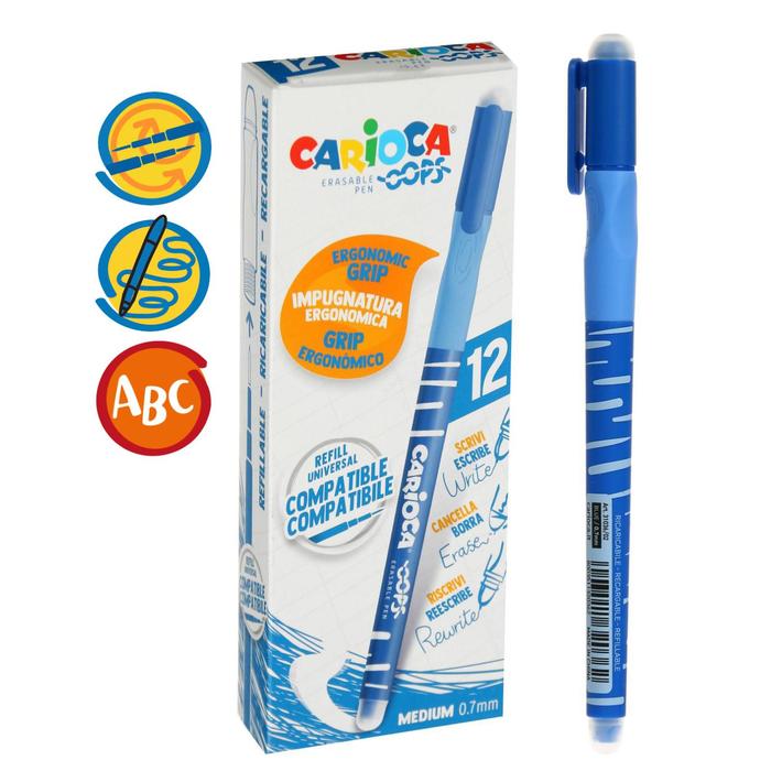 Многоразовая стираемая гелевая ручка OOPS с термочувствительными черными чернилами. Эргономичная и трехгранная нескользящая зона захвата для лучшего письма. Двойная резина - на колпачке и обратной стороне ручки. Толщина линии - 0,7 мм.