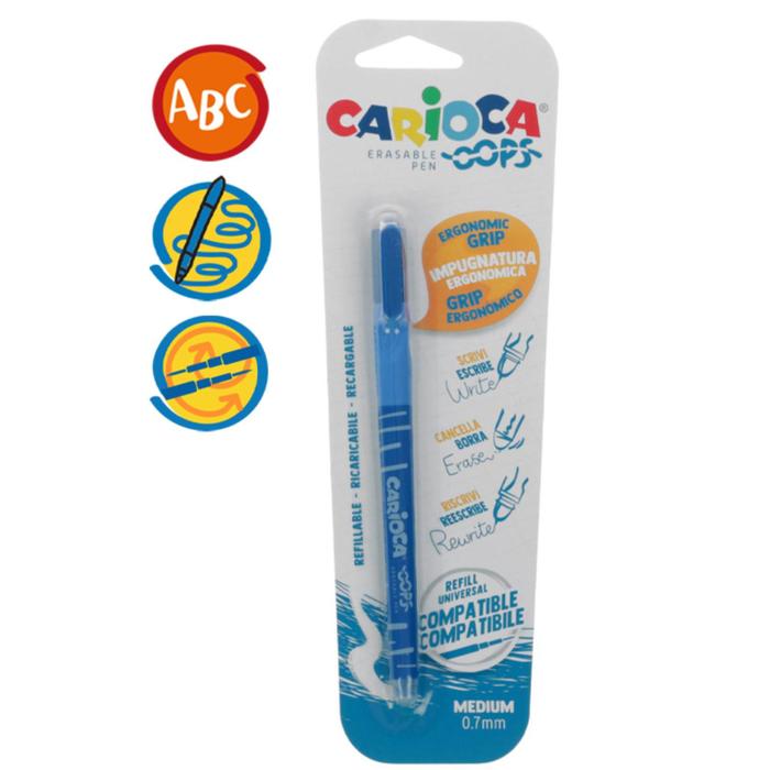 Многоразовая стираемая гелевая ручка OOPS с термочувствительными черными чернилами. Эргономичная и трехгранная не скользящая зона захвата для лучшего письма. Двойная резина - на колпачке и обратной стороне ручки. Толщина линии - 0,7 мм.