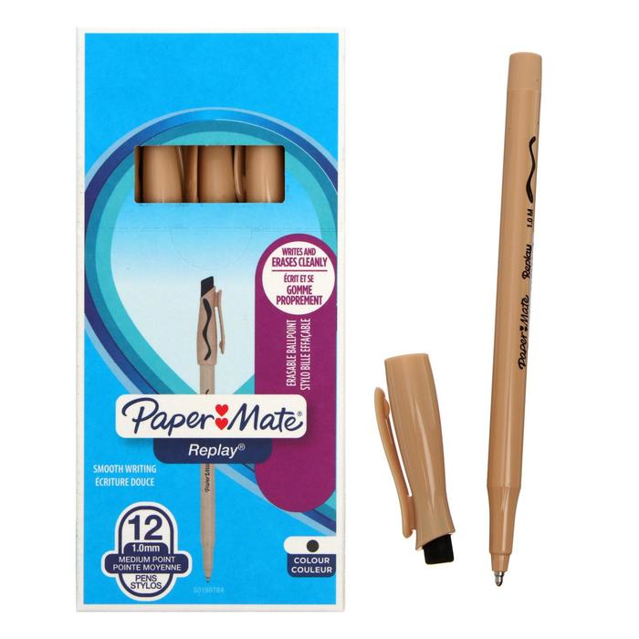 Paper Mate Replay — это одноразовая шариковая ручка со стираемыми в течение 24 часов чернилами. Толщина линии — 1 мм.