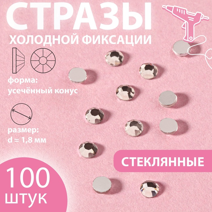 Стразы «Усечённый конус», стеклянные, d=1.8 мм, 100 шт., цвет серебряный