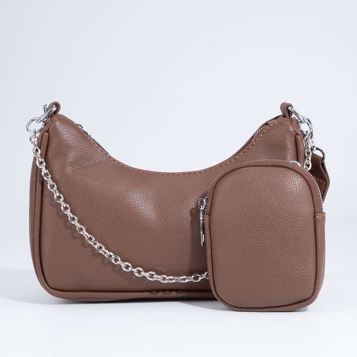 Сумка-багет на молнии, длинный ремень, цвет коричневый
