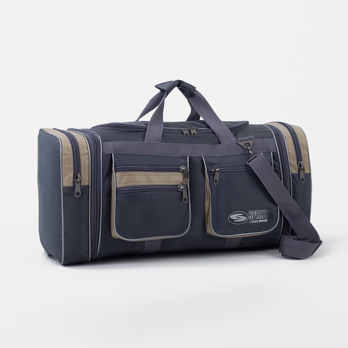 Сумка дорожная на молнии, с увеличением, 5 наружных карманов, цвет серый