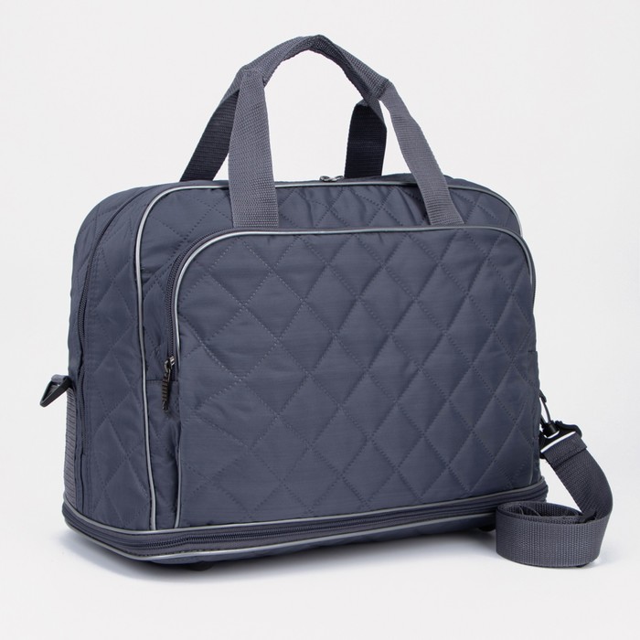 Сумка дорожная на молнии, с увеличением, наружный карман, длинный ремень, цвет серый