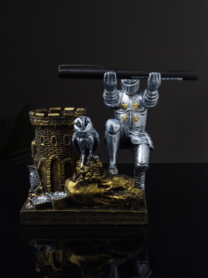 Изделие выполнено из высококачественного полистоуна, который славится своей прочностью и долговечностью. Разноцветное покрытие добавляет изделию особую выразительность: от детализированных доспехов рыцаря до мягких перьев совы. Каждая черта проработана с особым вниманием к деталям, что делает этот органайзер не просто функциональным предметом, а настоящим произведением искусства.