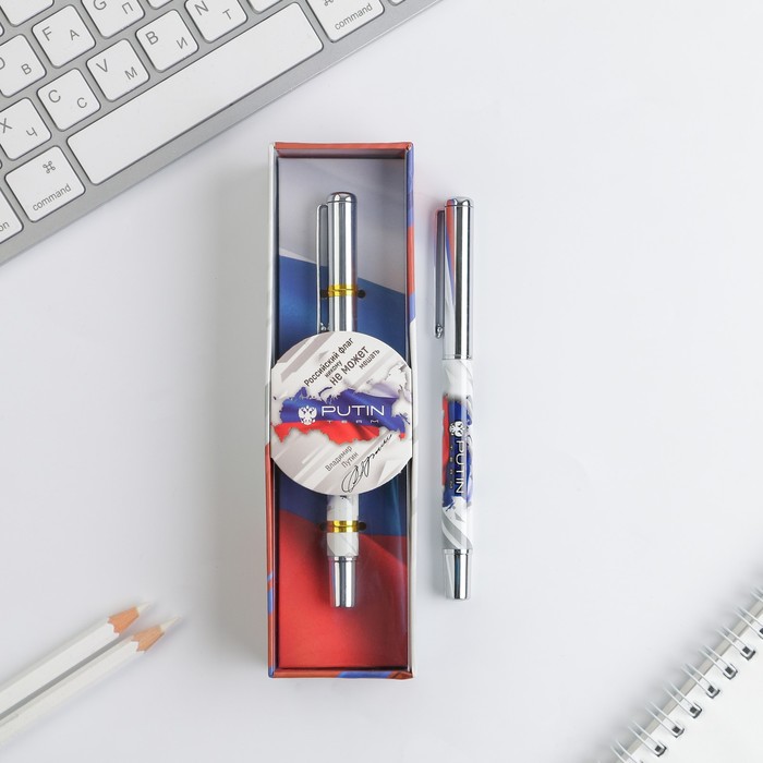 Ручка металл с колпачком Putin team, фурнитура серебро