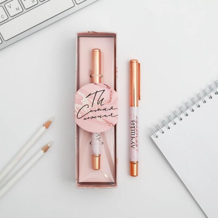Ручка шариковая, синяя паста, 1.0 мм, металлическая «Ты самая нежная»