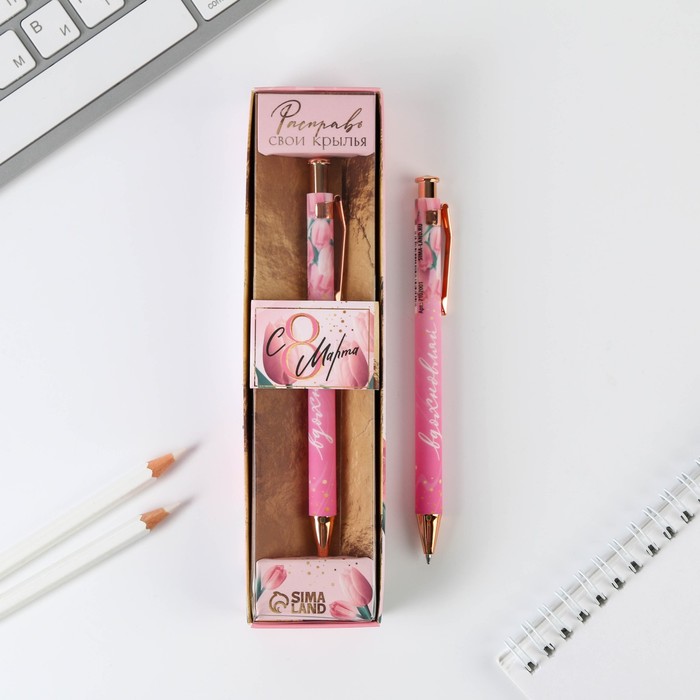 Ручка пластик в подарочной коробке «Расправь свои крылья. С 8 марта», шариковая, синяя паста 0,7мм