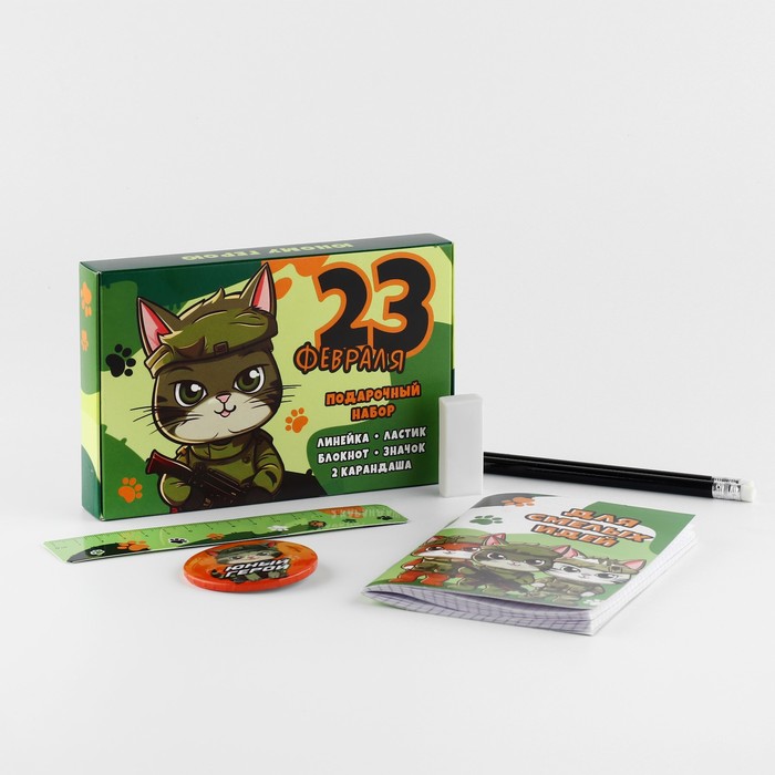 Подарочный набор, блокнот 9×10.4 см и мини-ручка «23 февраля: С днем защитника Отечества»