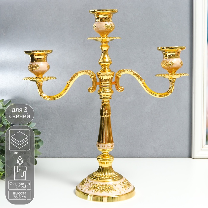 Металлический подсвечник на 3 свечи «Канделябр. Розарий», золото, белая эмаль, 36.5×31.5×12 см - товар, который Вы можете приобрести в нашем интернет-магазине. Заказ могут оформить как юридические, так и физические лица. Бесплатная доставка по Астане, также, отправляем по РК.