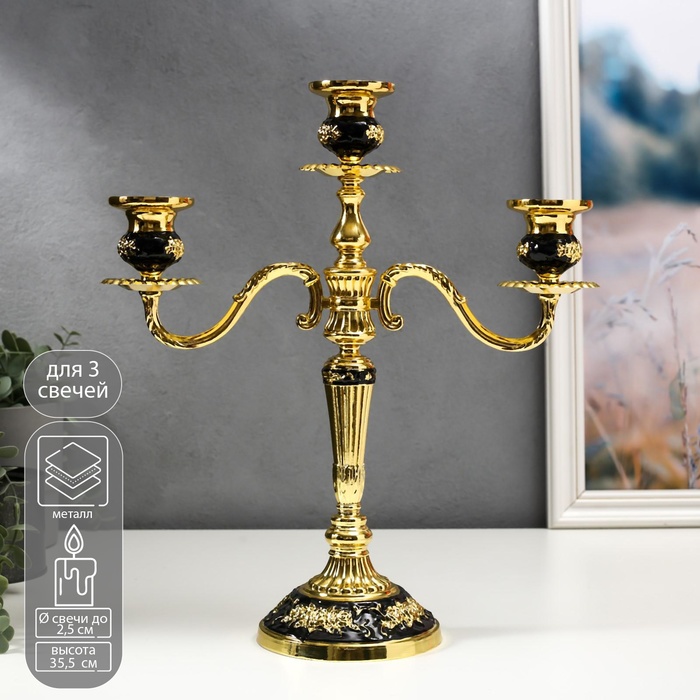 Металлический подсвечник на 3 свечи «Канделябр. Розарий», золото, чёрная эмаль, 35.5×32×12 см - товар, который Вы можете приобрести в нашем интернет-магазине. Заказ могут оформить как юридические, так и физические лица. Бесплатная доставка по Астане, также, отправляем по РК.