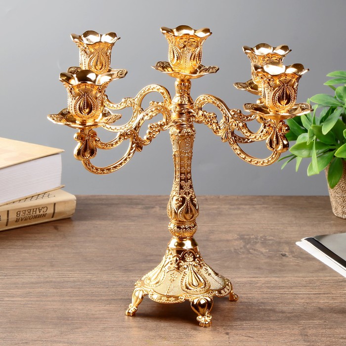 Металлический подсвечник на 5 свечей «Канделябр. Узорный», золото, 28×26×26 см - товар, который Вы можете приобрести в нашем интернет-магазине. Заказ могут оформить как юридические, так и физические лица. Бесплатная доставка по Астане, также, отправляем по РК.
