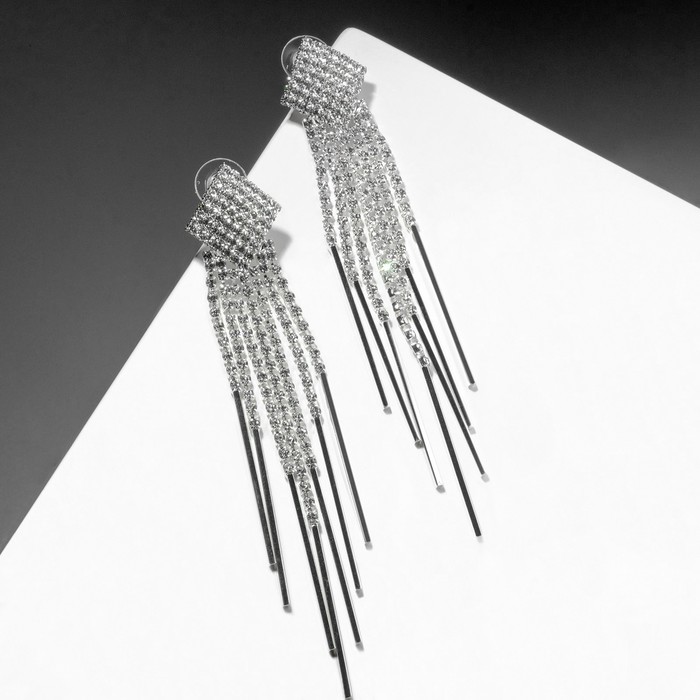 Серьги "Голливуд" ромб и цепочки, цвет белый в серебре, 10,6см