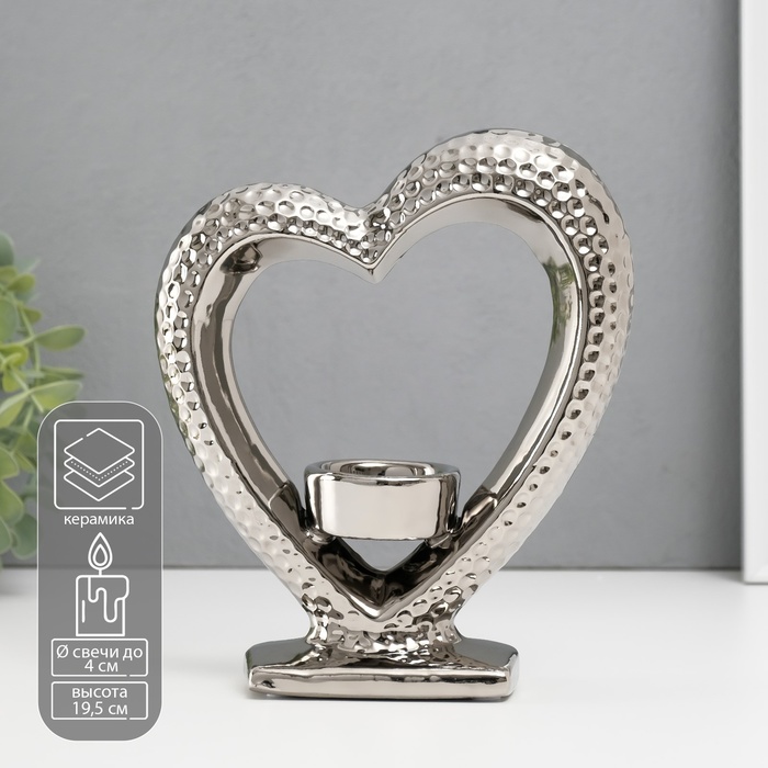 Подсвечник на 1 свечу «Сердце на подставке», d=4 см, серебро, 17×5.5×19.5 см - товар, который Вы можете приобрести в нашем интернет-магазине. Заказ могут оформить как юридические, так и физические лица. Бесплатная доставка по Астане, также, отправляем по РК.