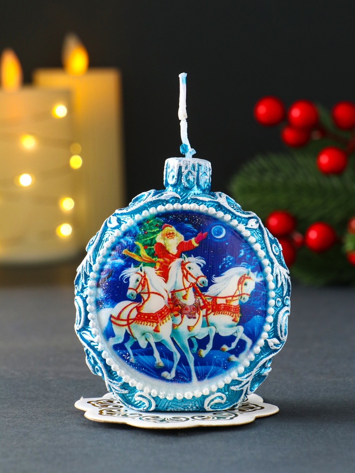 Эта праздничная свеча с фигурой Деда Мороза создаёт в доме атмосферу самого волшебного зимнего праздника. Синий парафиновый декор станет центральным элементом новогоднего убранства, наполняя пространство теплом и уютом живого огня. Идеальный акцент для создания праздничного настроения в канун Нового года.