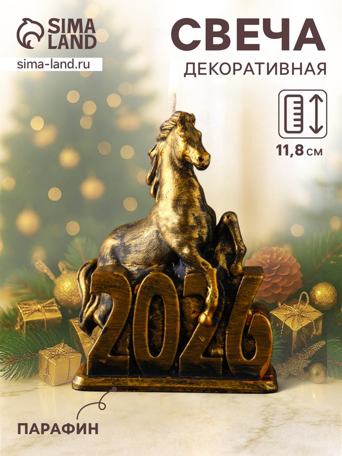 Встречайте символ года — элегантную лошадь в сиянии бронзы! Декоративная свеча «Лошадь 2026» — это изысканный акцент для создания праздничной атмосферы. Свеча станет центральным элементом новогоднего декора, наполняя пространство теплом и уютом живого огня.