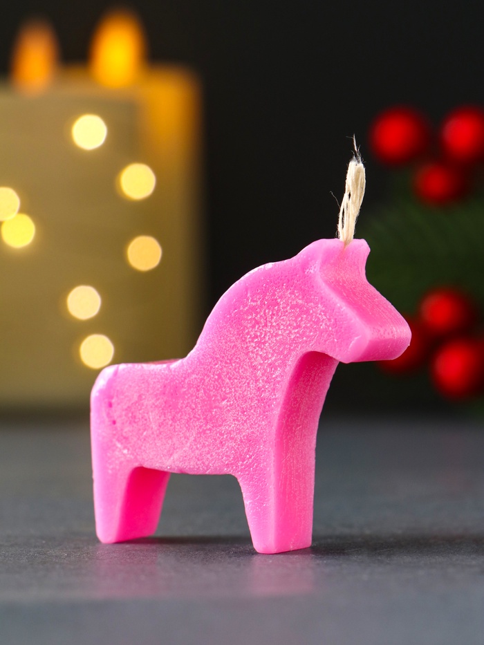 Эта розовая свеча в виде лошадки создаёт праздничное настроение и становится милым дополнением новогоднего декора. Миниатюрный размер делает её универсальным аксессуаром для украшения праздничного стола, создания уюта в любой комнате или оформления композиций в каминной зоне.