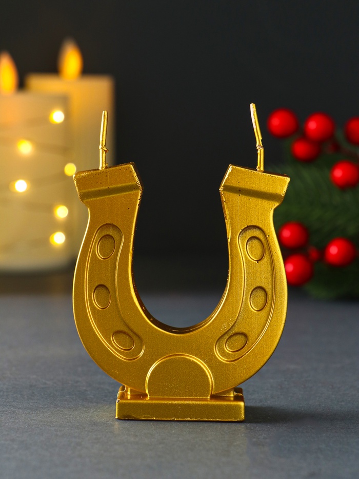 Эта золотая свеча в форме подковы станет тёплым символом удачи и уюта в вашем праздничном интерьере. Её лаконичная форма и глубокий золотой оттенок создают атмосферу волшебства, наполняя пространство ожиданием чуда и новогоднего торжества.
