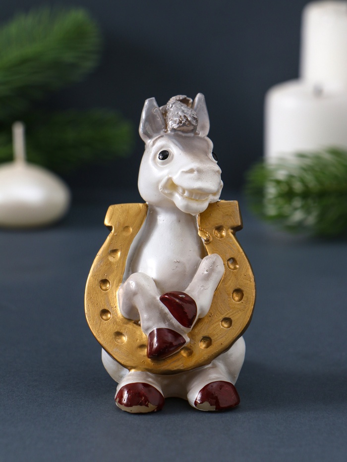 Символ удачи и стильный декор для вашего дома! Декоративная свеча «Лошадка с подковой» — это изящный акцент, который привнесет в интерьер нотку благополучия и уюта. Её лаконичная форма и благородный серебристый оттенок делают свечу универсальным элементом для любого стиля.