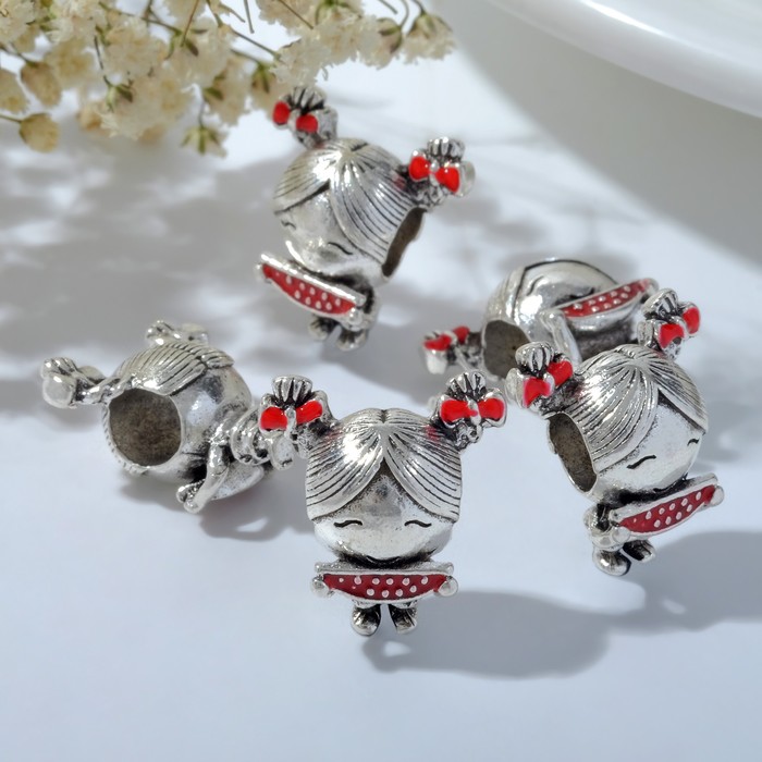 Талисман "Девочка" с арбузом, цвет красный в серебре