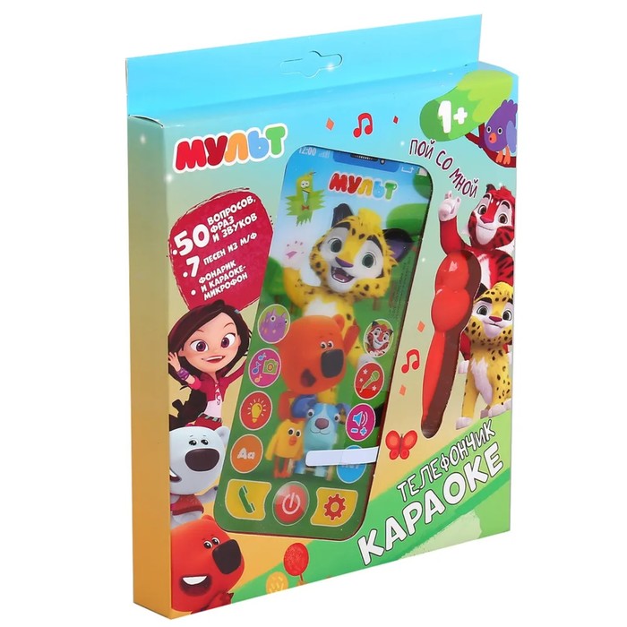 Музыкальный телефон «Зверюшки», русская озвучка, световые эффекты, работает от батареек, МИКС