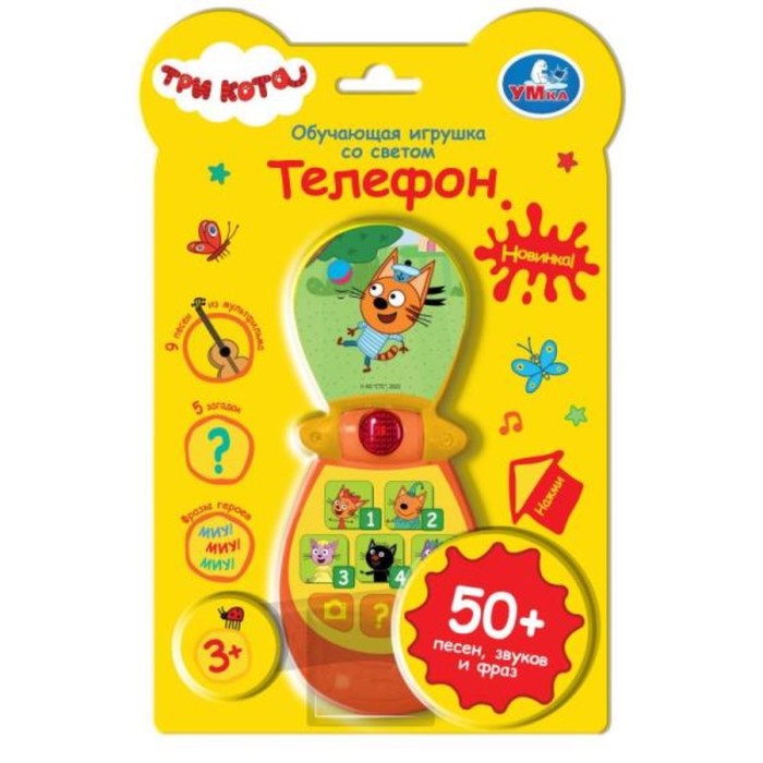 Обучающая игрушка со светом «Три кота. Телефон», 50 песен, звуков, фраз, свет
