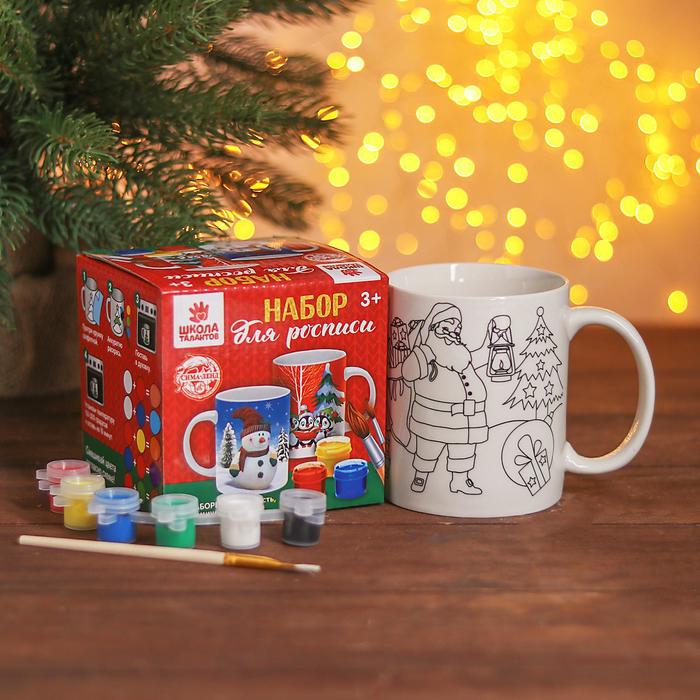 На кружке нанесены контуры будущего изображения, которые крохе предстоит заполнить акриловыми красками. После высыхания они хорошо держатся на керамической поверхности, так что изделие можно будет мочить и даже разогревать в микроволновой печи.