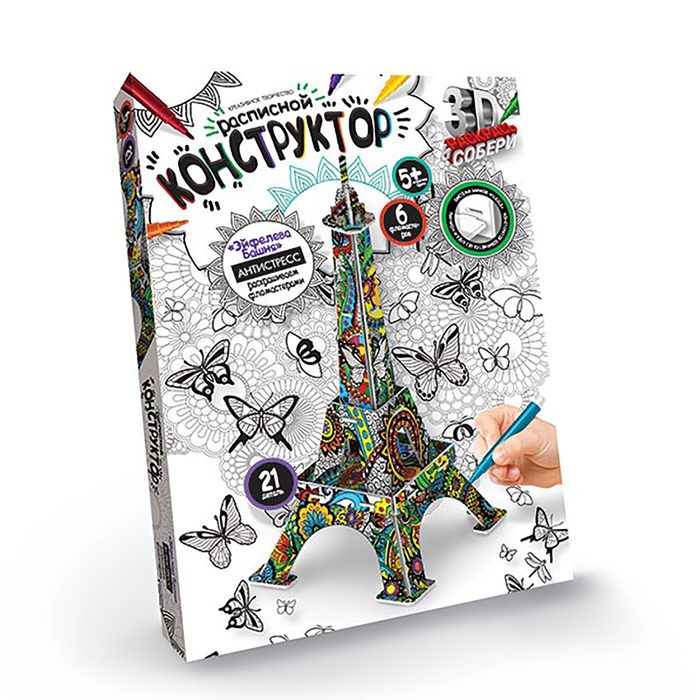 Расписной конструктор-антистресс «Эйфелева Башня» + фломастеры