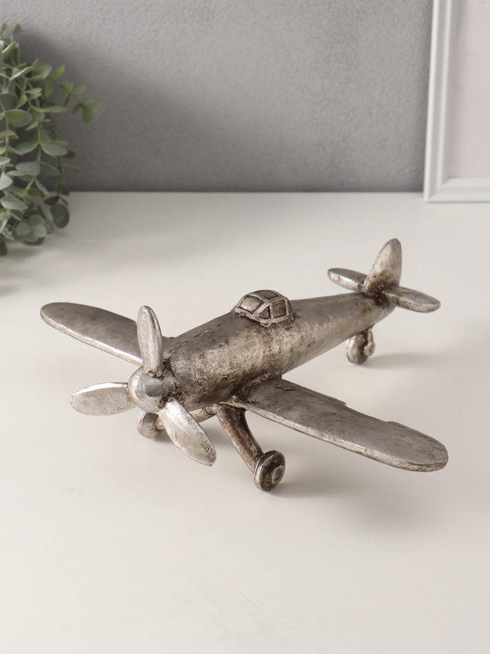 Позвольте себе окунуться в атмосферу прошлого с этой уникальной фигуркой, которая станет настоящим украшением вашего интерьера. Винтовой самолёт, выполненный в ретро-стиле, с серебристым покрытием и эффектом патины, словно переносит в эпоху первых воздушных путешествий, наполняя пространство духом приключений и романтики.