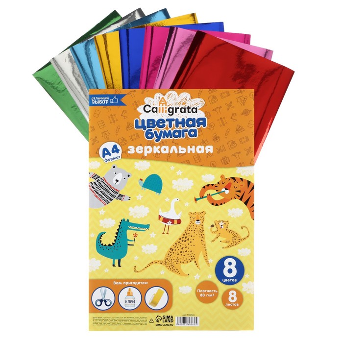 Набор бумаги зеркальной А4, 8 листов, 8 цветов, 80 г/м2 - товар, который Вы можете приобрести в нашем интернет-магазине. Заказ могут оформить как юридические, так и физические лица. Бесплатная доставка по Астане, также, отправляем по РК.