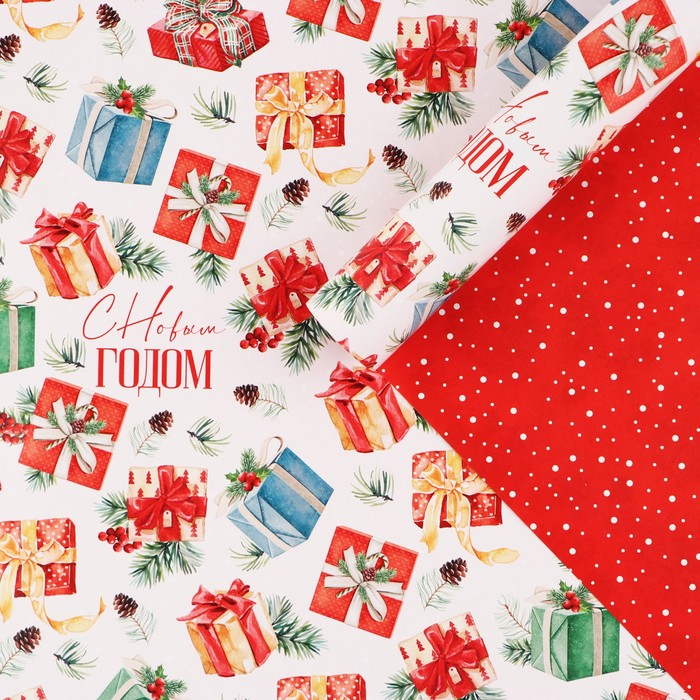 Упаковочная бумага на новый год глянцевая двухсторонняя «Новогодние подарки», 50 х 70 см - товар, который Вы можете приобрести в нашем интернет-магазине. Заказ могут оформить как юридические, так и физические лица. Бесплатная доставка по Астане, также, отправляем по РК.