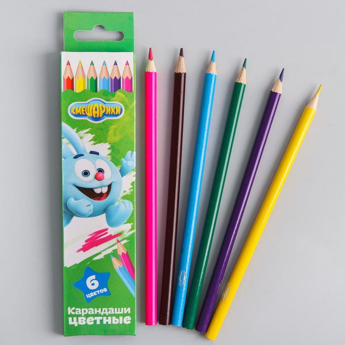 Карандаши цветные 6 цветов, корпус деревянный, треугольный, в картонной коробке