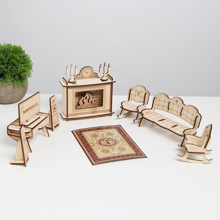 Стильные предметы для гостиной с камином — хорошее дополнение для кукольного домика. Набор продаётся в разобранном виде. Детали собираются между собой в пазы, как конструктор, без клея. После сборки предметы гостиной можно раскрасить карандашами или красками.