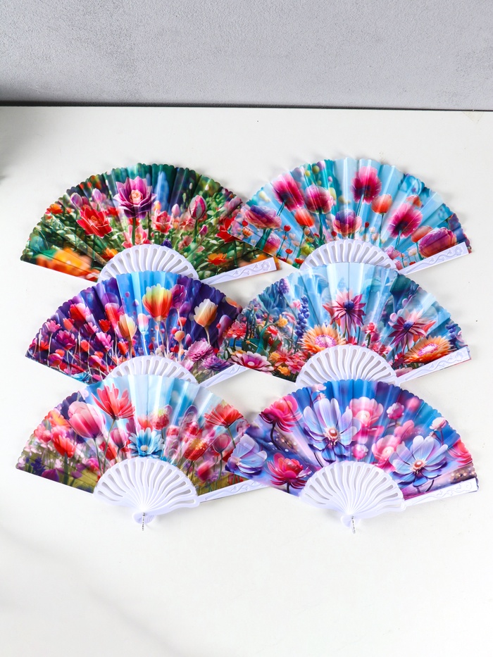 Этот складной веер с цветочным принтом создаёт приятную прохладу в жаркий день. Компактный размер делает его удобным спутником для прогулок, поездок или посещения мероприятий.