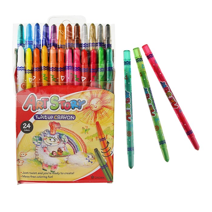 Восковые карандаши Art Store Crown превосходно подходят для маленьких художников. Яркий, сочный пигмент на основе качественного растительного воска плотно и ровно наносится на бумагу любых сортов, создавая изящный рисунок.
