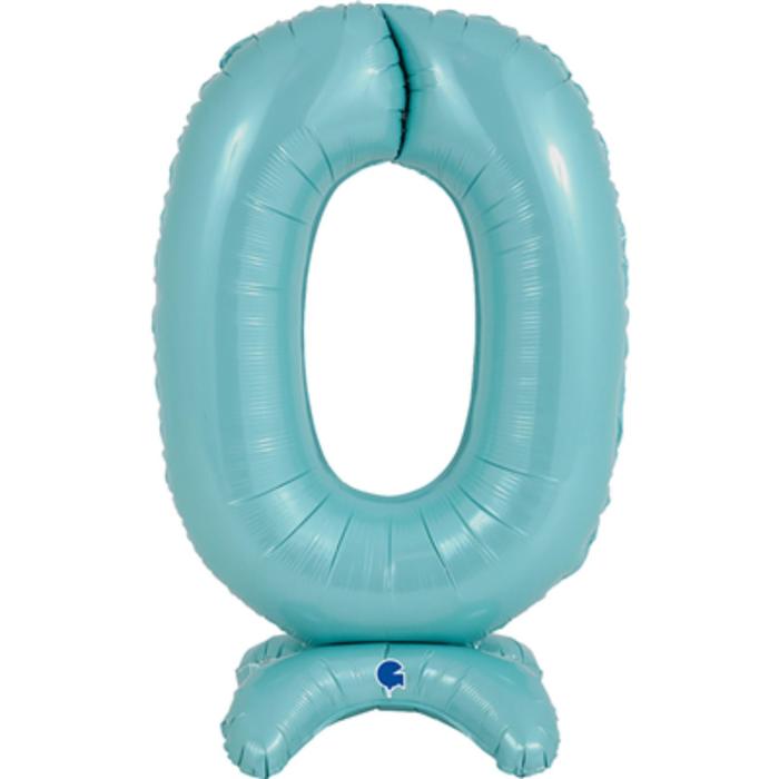 Шар фольгированный 25" «Цифра 0», на подставке, для воздуха, цвет пастельно-голубой