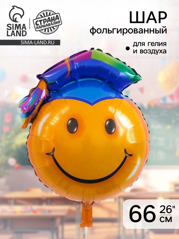 Яркий акцент для самого важного праздника. Позитивный смайл в академической шапочке станет идеальным завершением оформления выпускного вечера или памятной фотосессии.